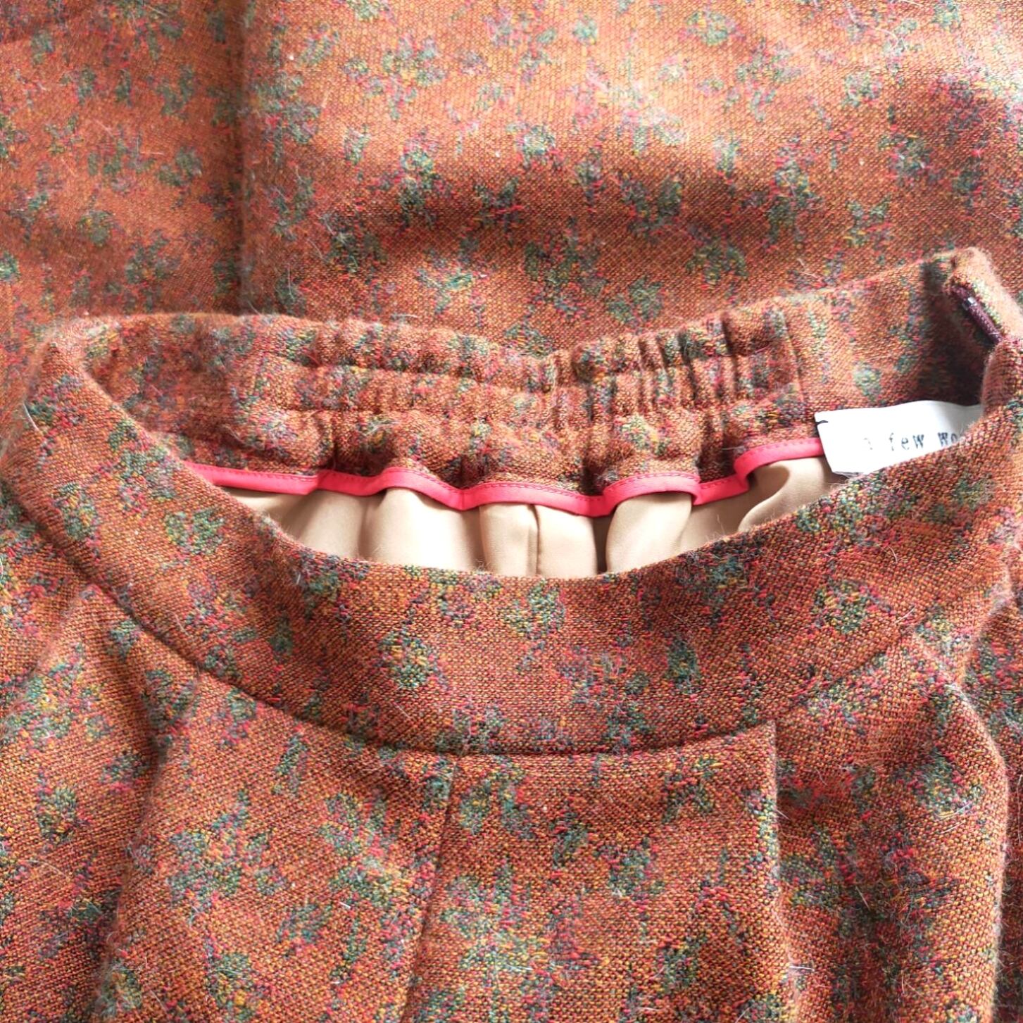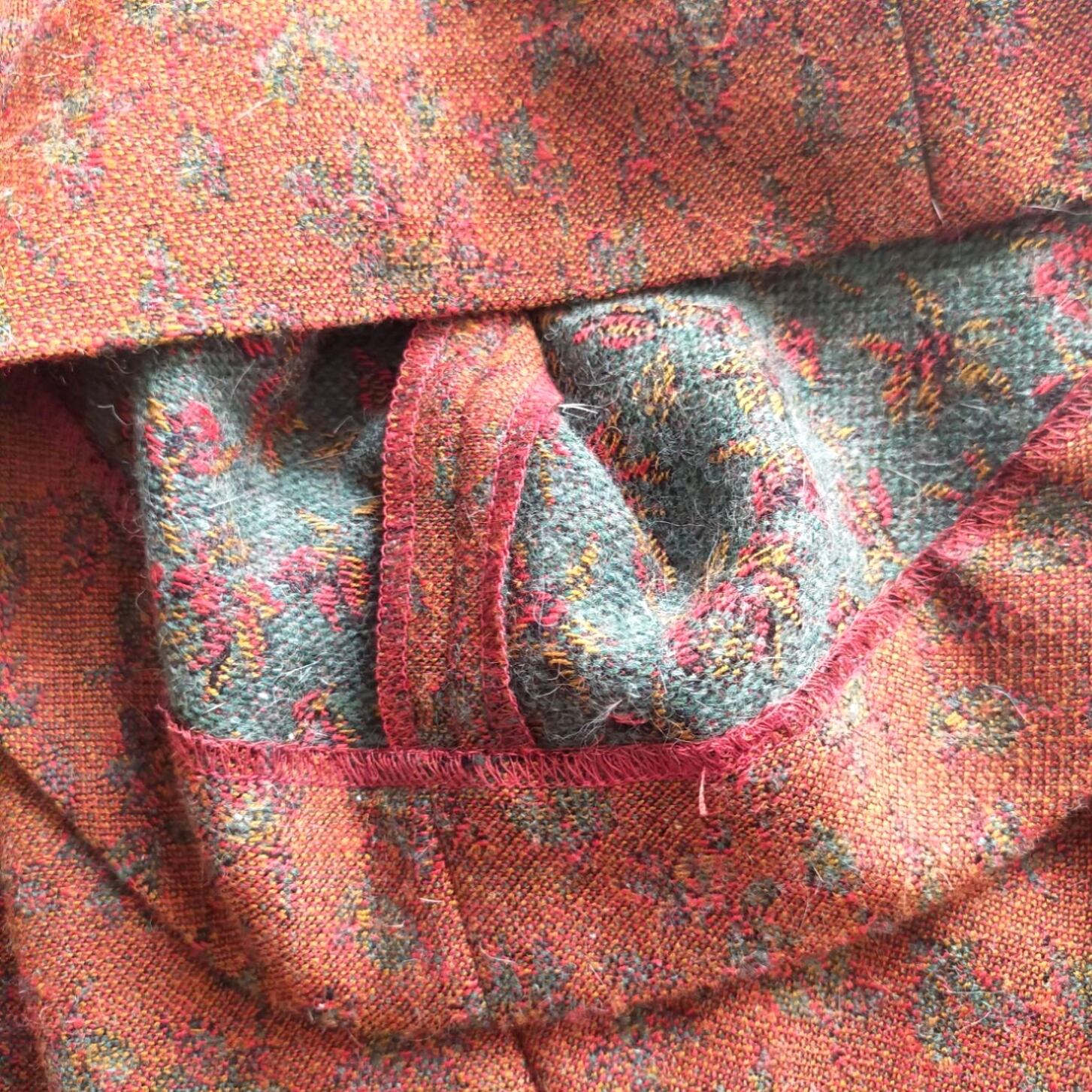 元々はグリーンカラーが表側でしたが、レンガ色にグリーンの草花柄がぼんやりと浮かび上がる
