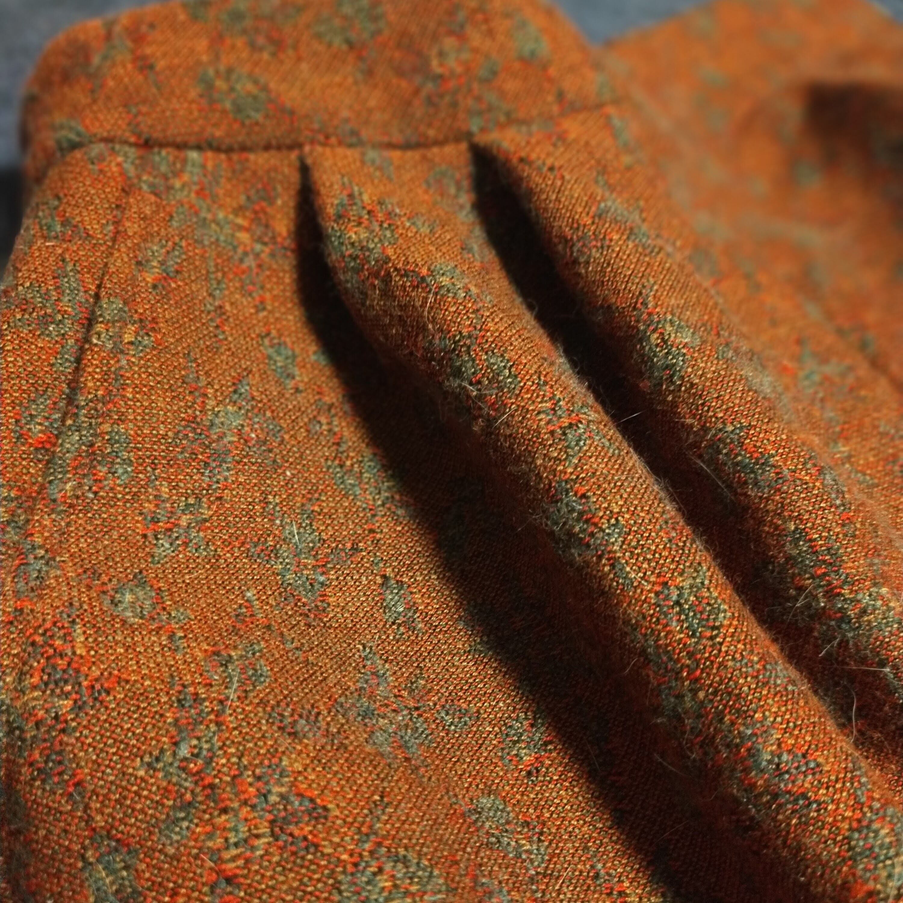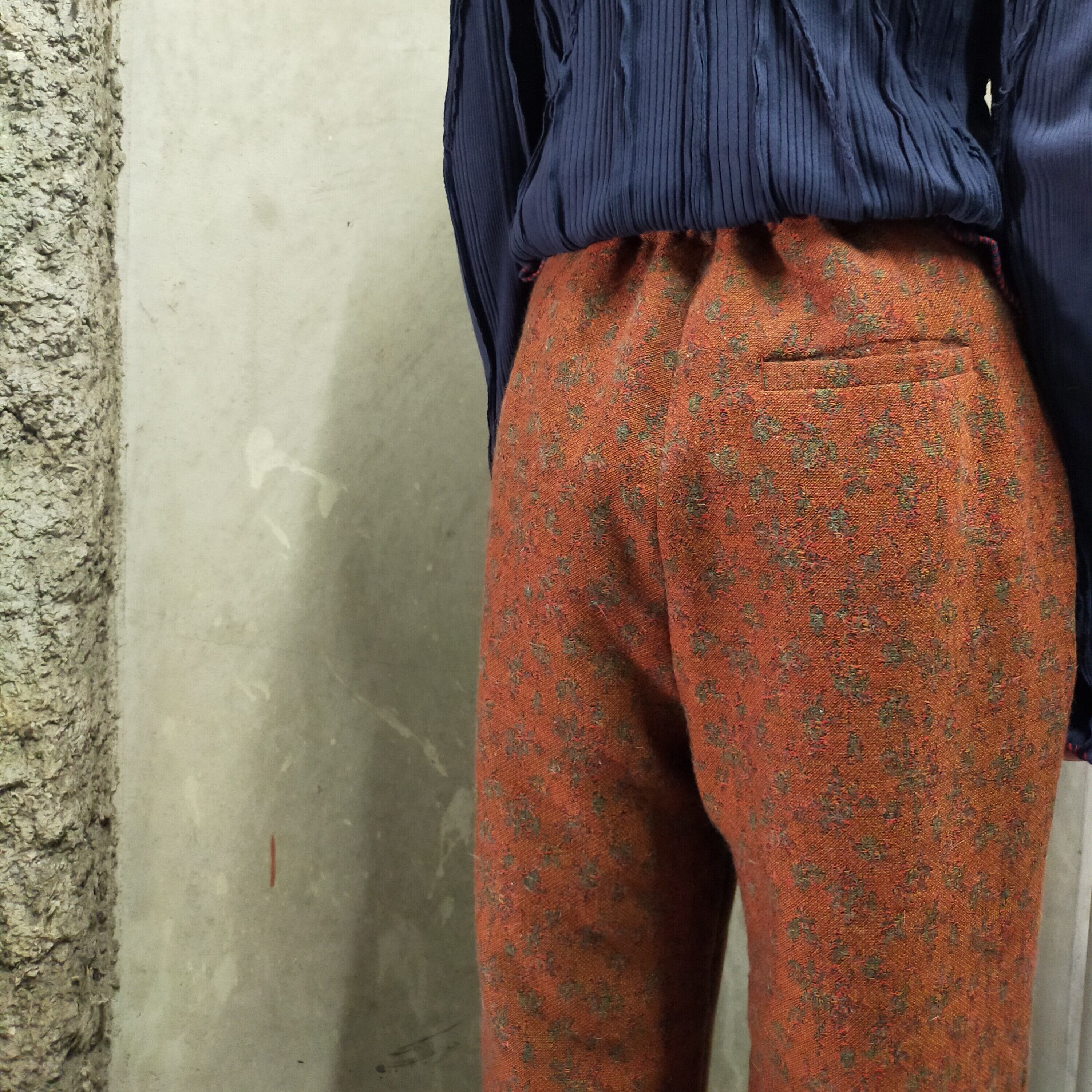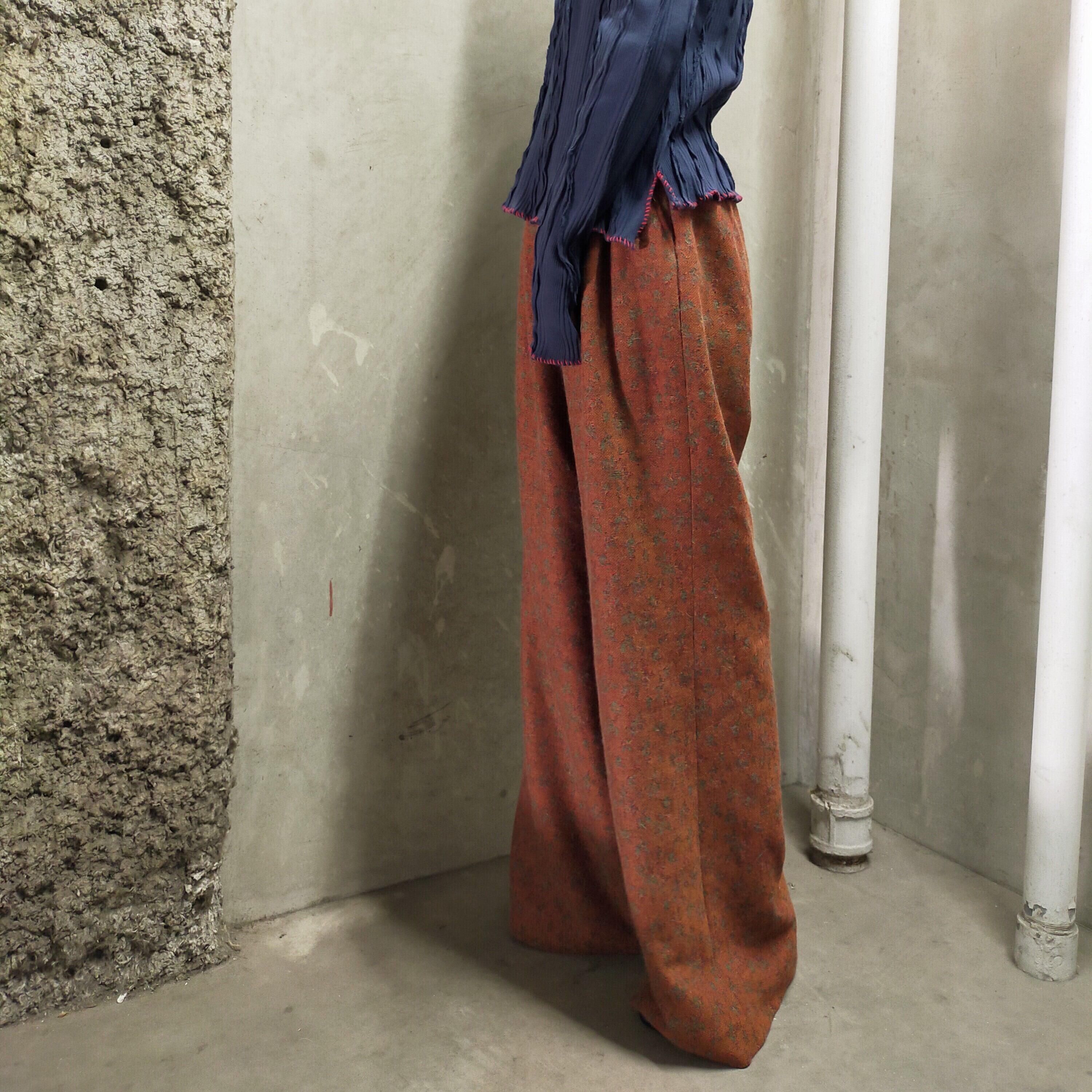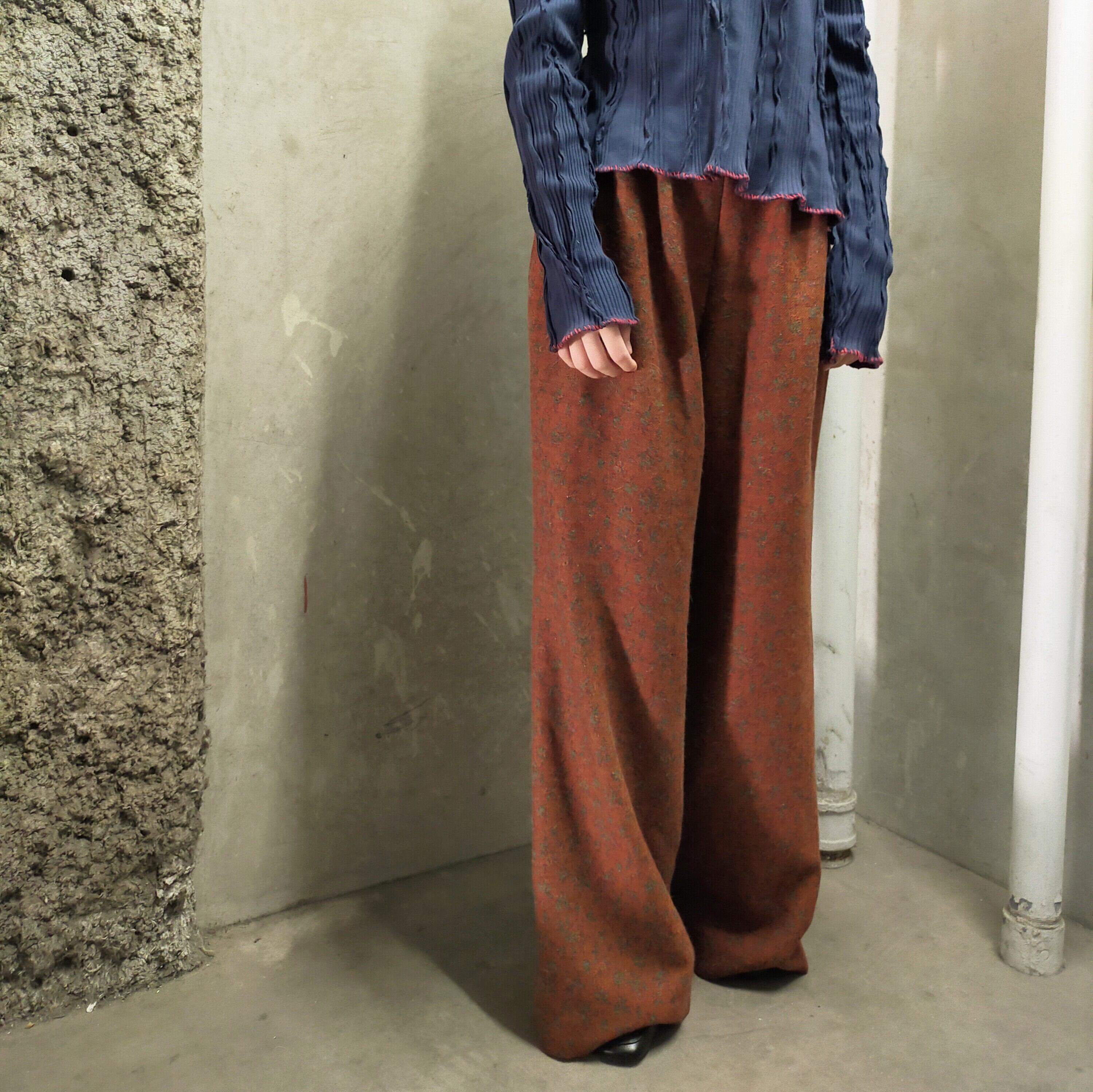 祖母のデッドストックコレクションの中に眠っていたヴィンテージのウール生地を使用した2タックワイドパンツ。