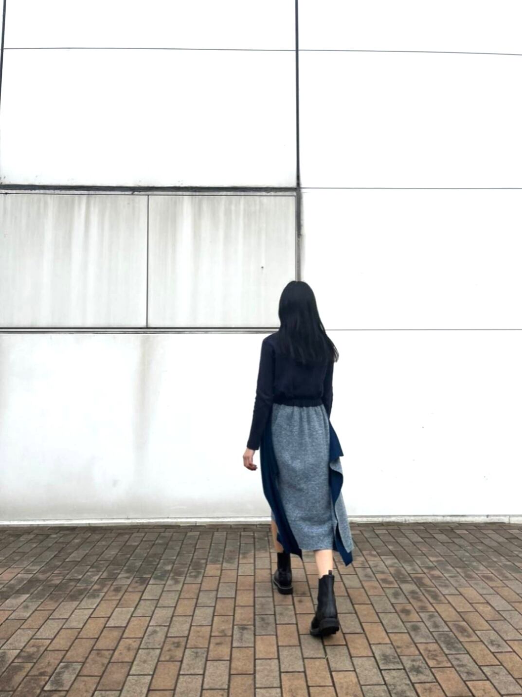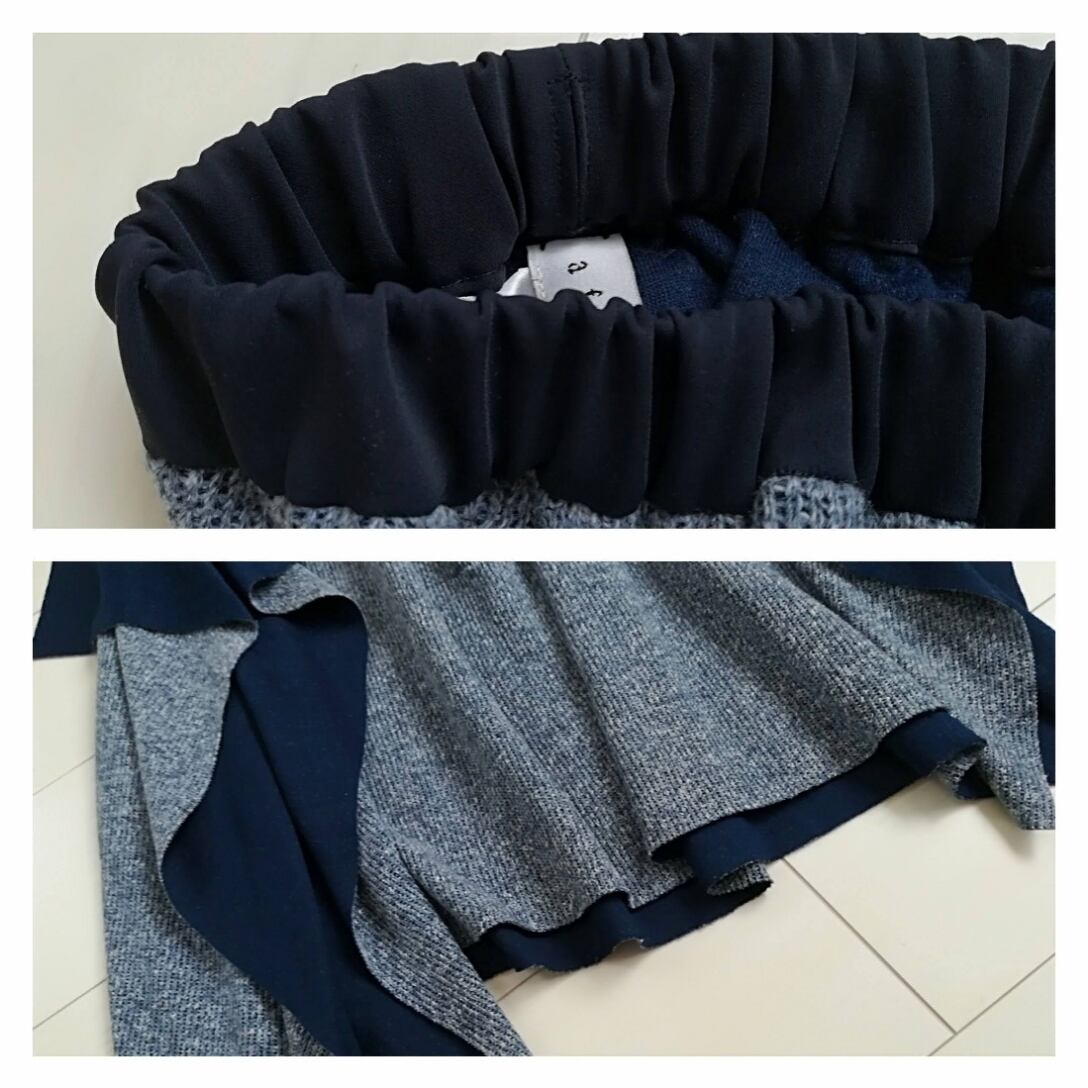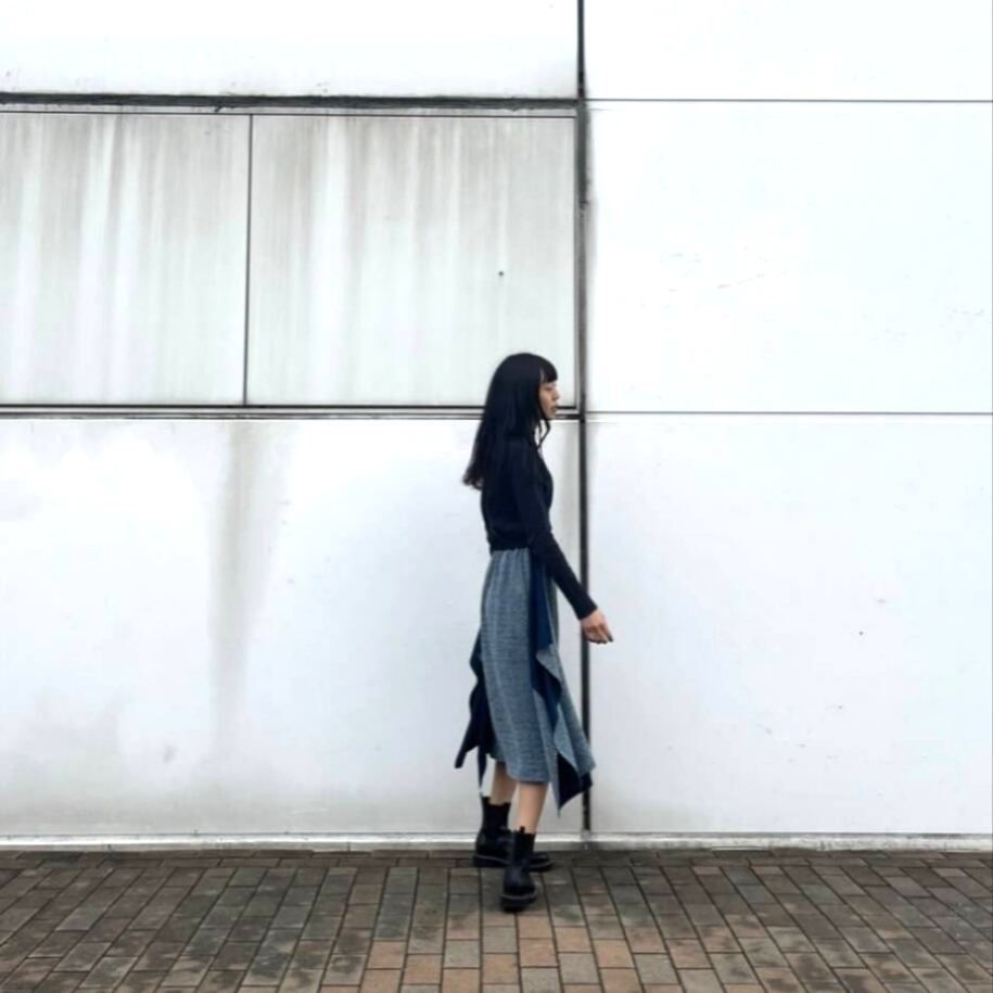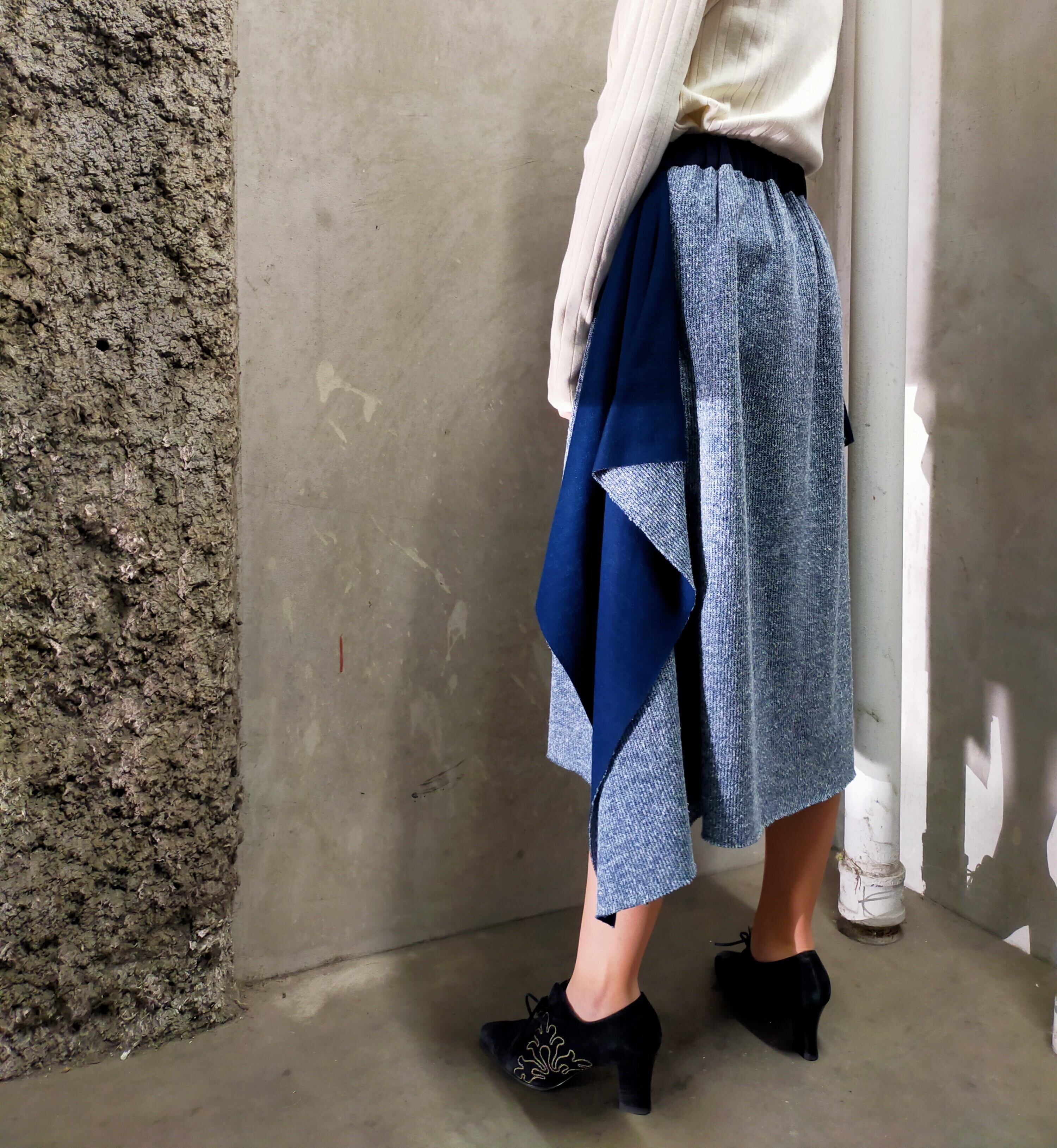 表と裏で表情の違う接結ニットの生地を使用した、動くたびに表情の変わるスカート。