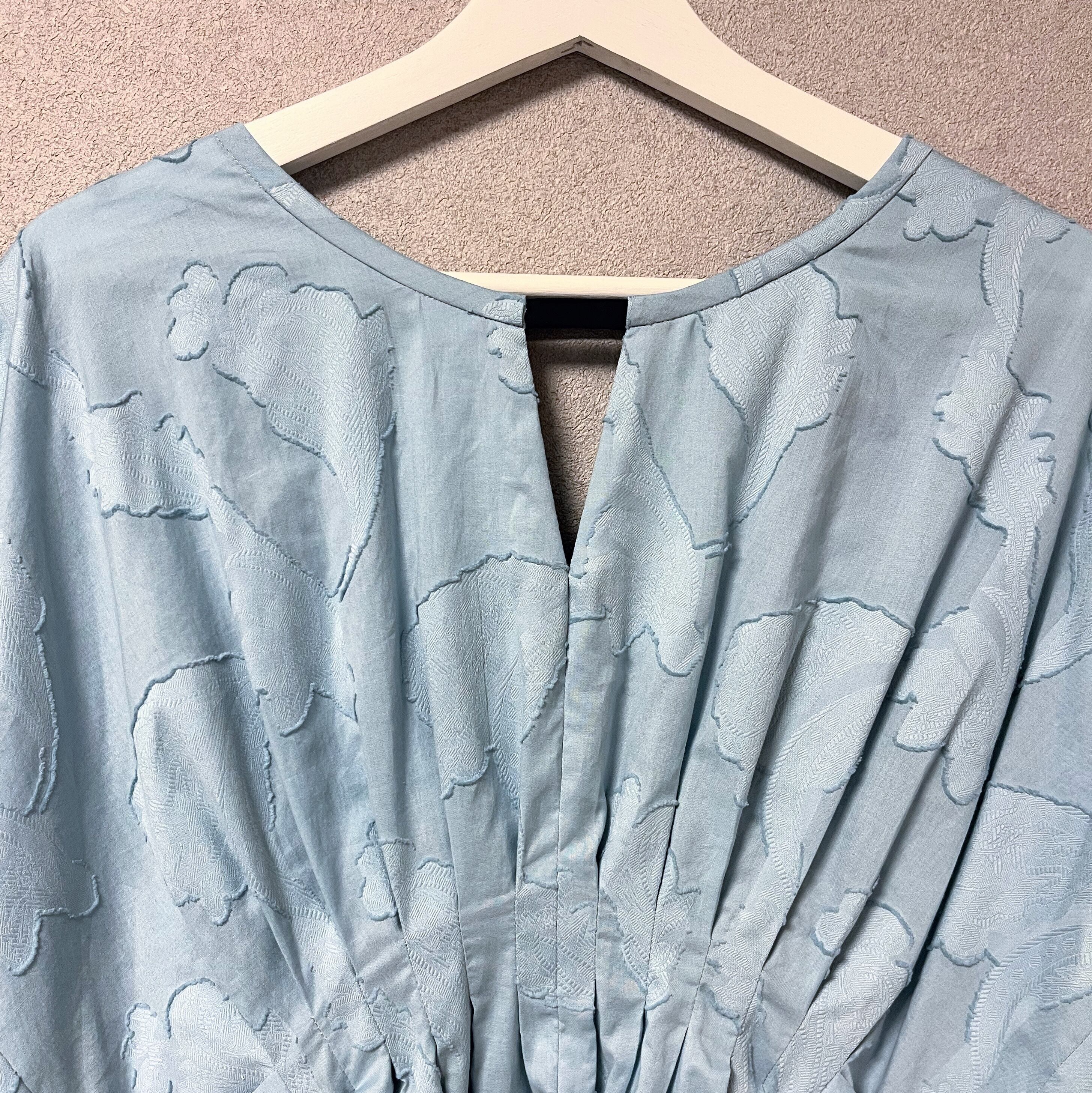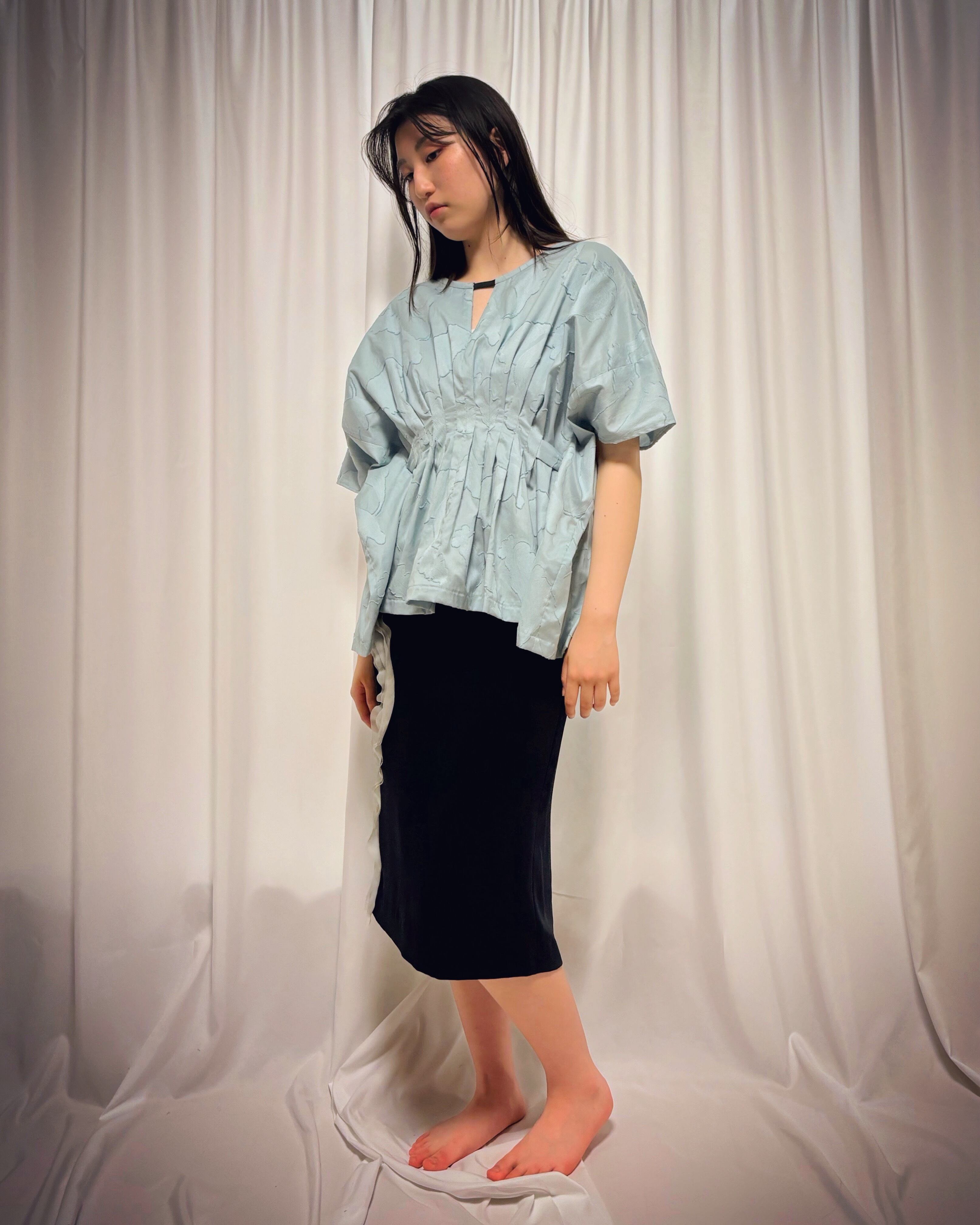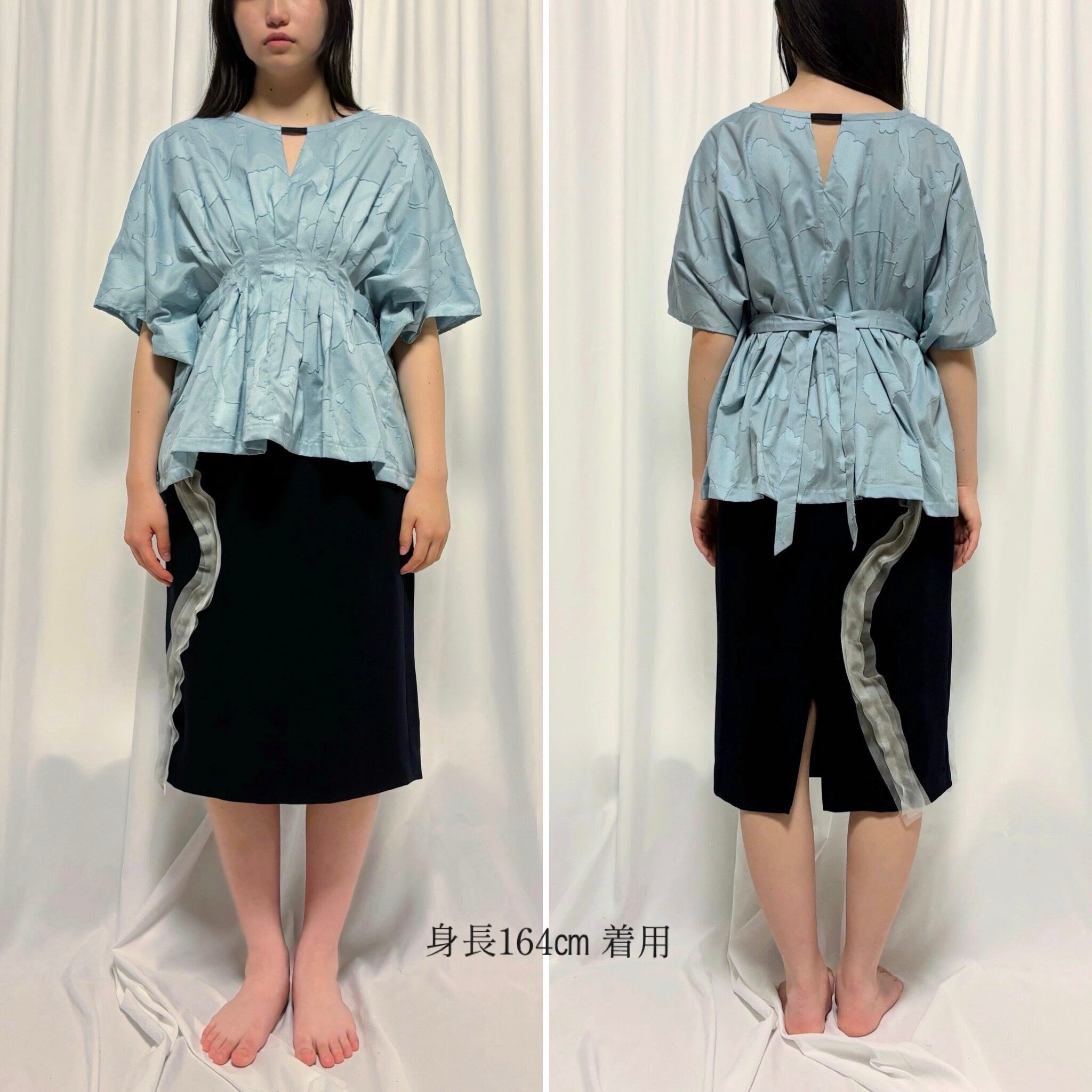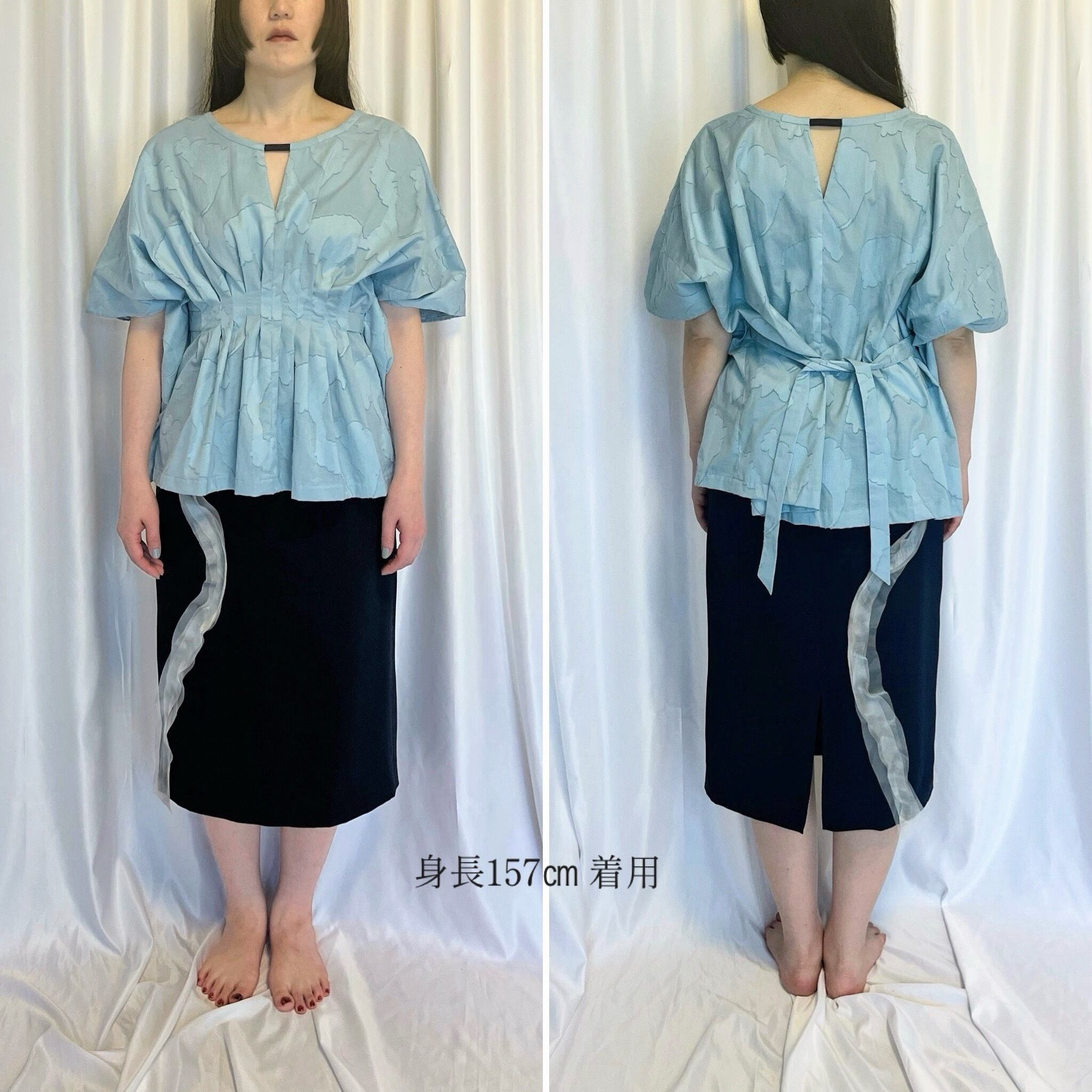 コットンジャカード素材が華やかな2wayウエストタックブラウス。
