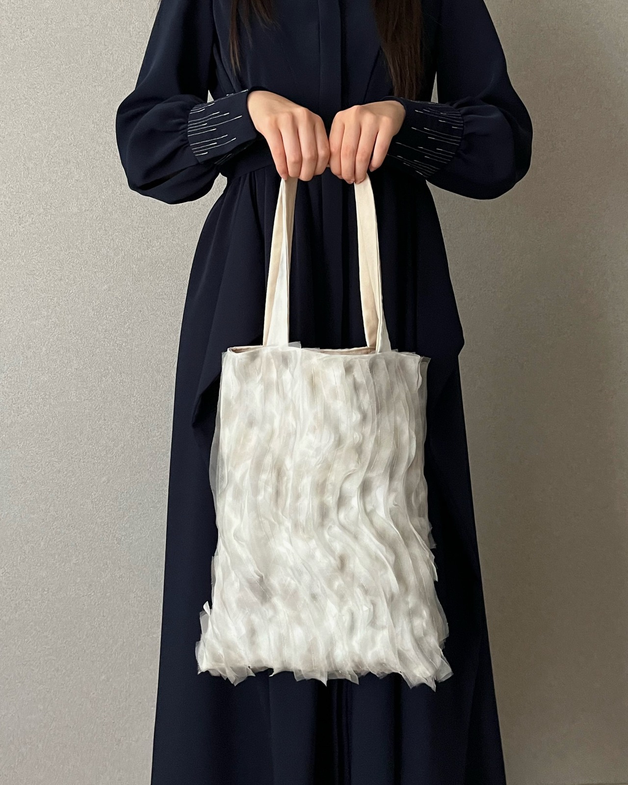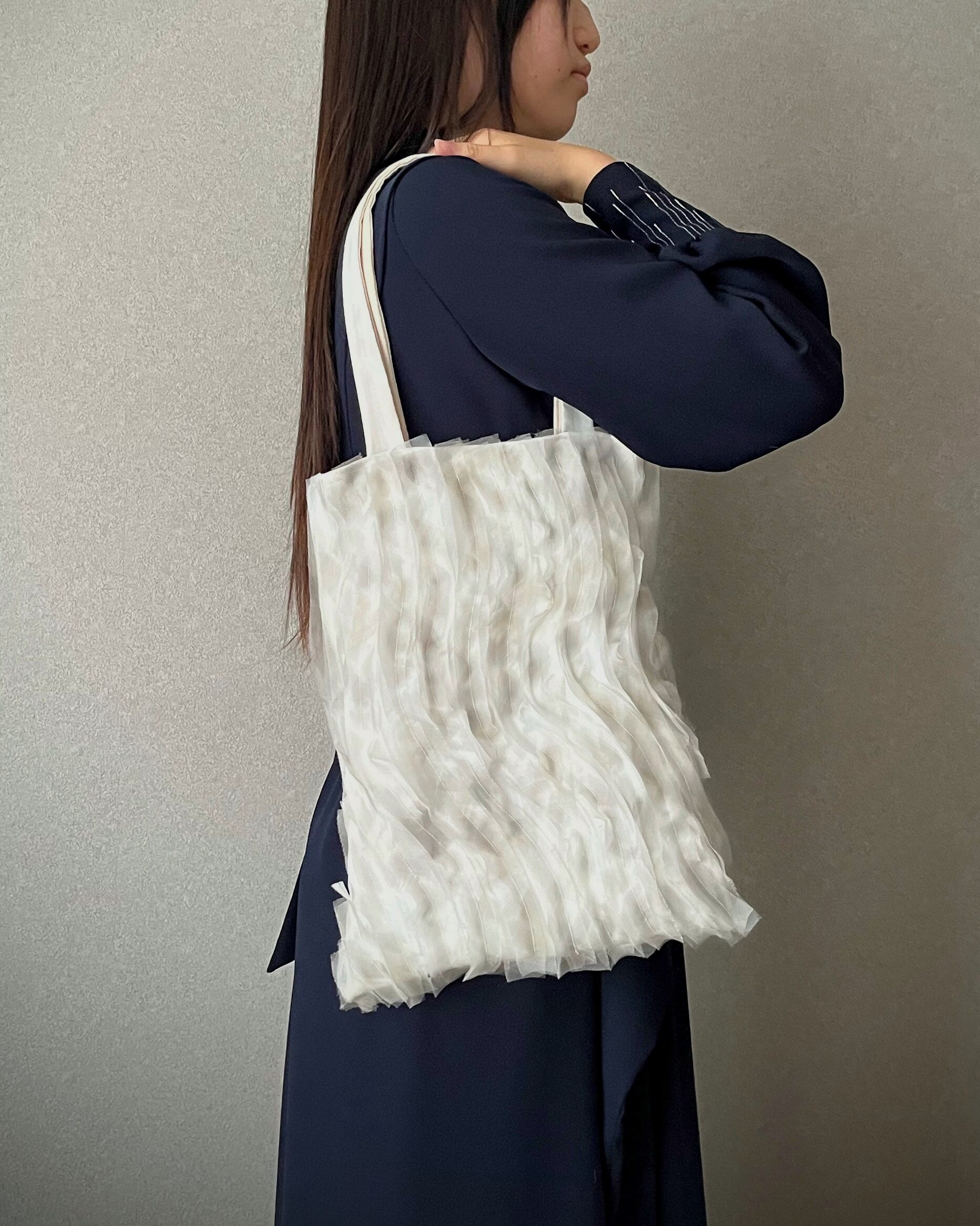 まだらグラデーションオーガンジーを重ね波型に施したリバーシブルトートバッグ。
